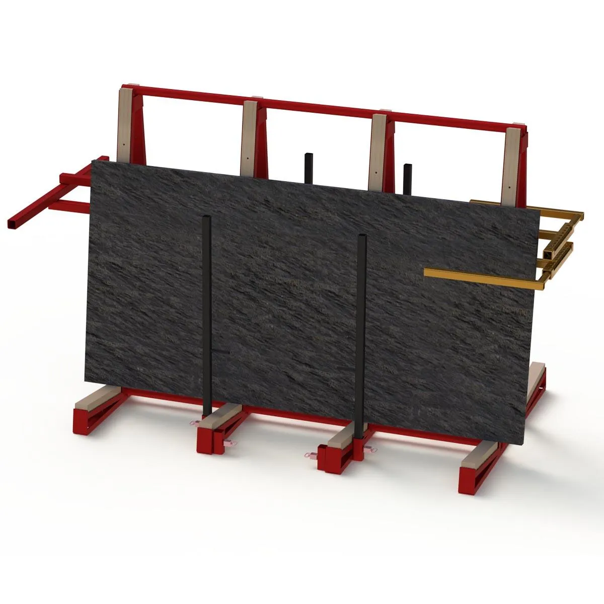 Our patented RockLock™ Safety Arm System and Vertical Support Posts are engineered to prevent slabs from tipping or falling during loading, unloading, and transport. Unlike traditional A-frames, our products are designed to survive sudden stops and collisions, protecting your team and your cargo.